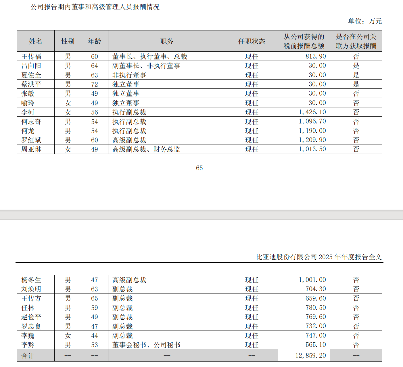 日前,比亚迪(002594.SZ)发布2025年年报,报告显示,公司高级副总裁兼财务总监周亚琳税前年薪1013.5万元,成为A股首位年薪破千万的财务掌门人。